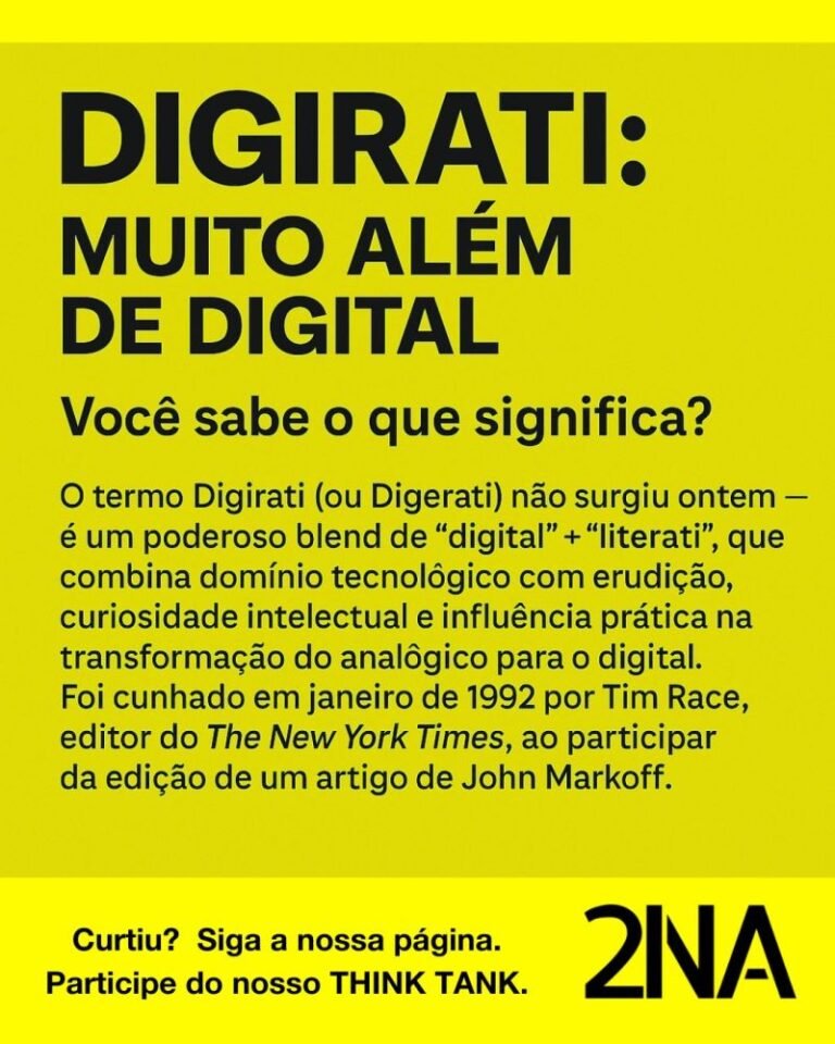 Você sabe o que significa?   O termo Digirati (ou Digerati) não surgiu ontem — é um poderoso blend de “digital” + “literati”, que une domínio tecnológico, erudição, curiosidade intelectual